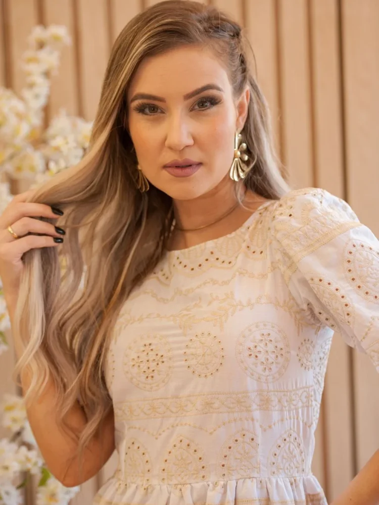 Vestido Vitória Off Bordado em Off