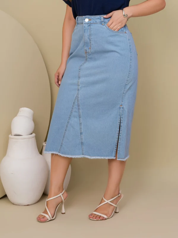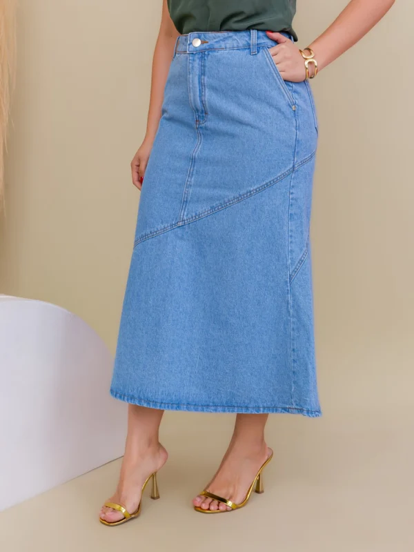 Saia Jeans Elineia Pereira Clara Moda Modesta
