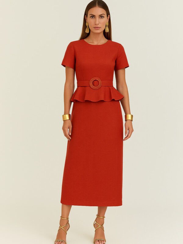 Conjunto Colete e Saia Evasê Azul Aline Meneghetti