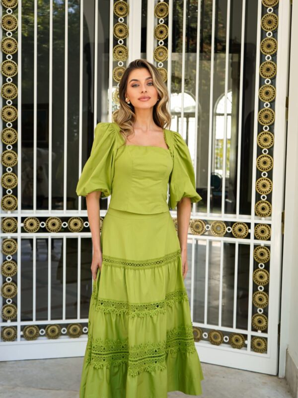 Conjunto Saia Midi e Blusa em Laise e Guipir (03985) DOCE MARIA