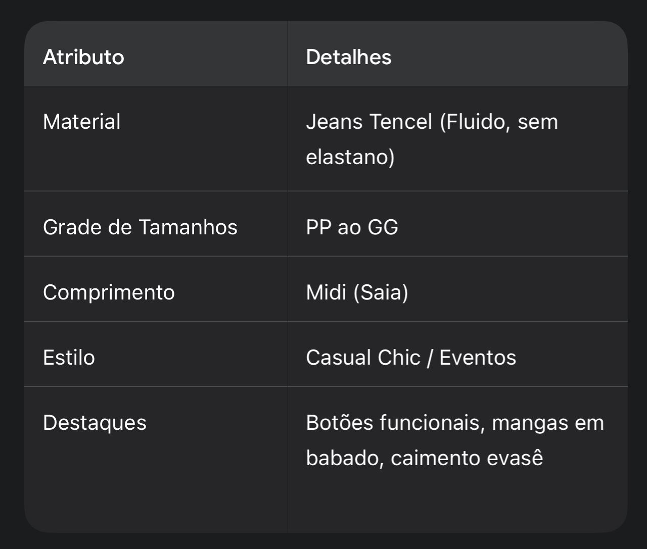 * Tecido: 100% Tencel (Leve, fresco e com caimento impecável).