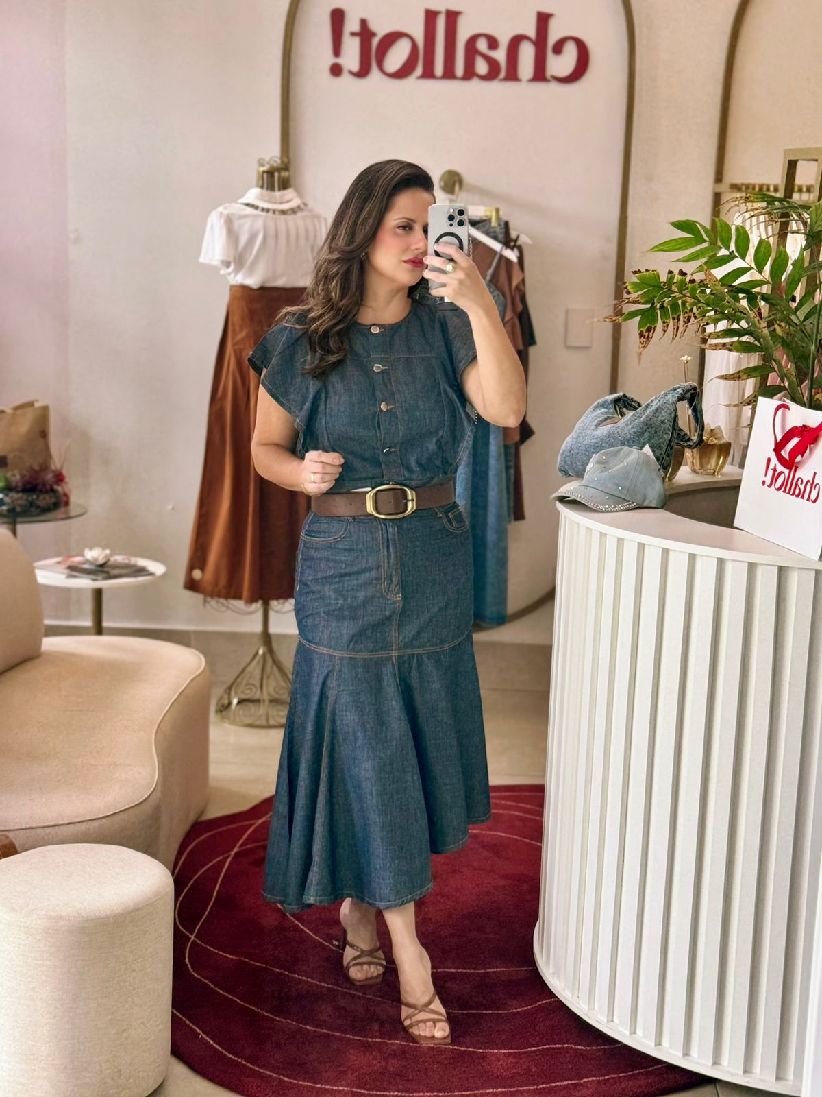 A ChallOt Jeans é uma marca brasileira especializada em moda feminina e moda modesta, com fábrica própria e envio para todo o Brasil.Conjunto Lavínia em Tencel Premium – Blusa e Saia Midi