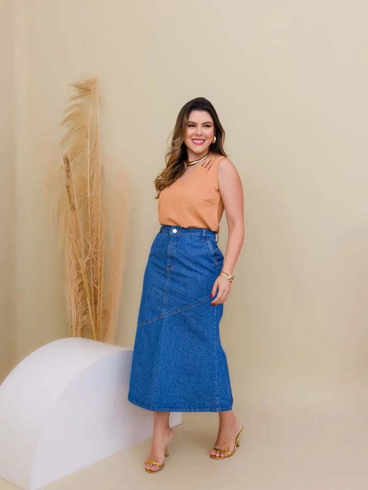 Saia Jeans Midi Elineia Pereira Azul Médio
