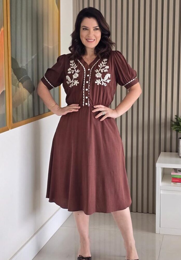 Vestido Evasê com Frente Bordada