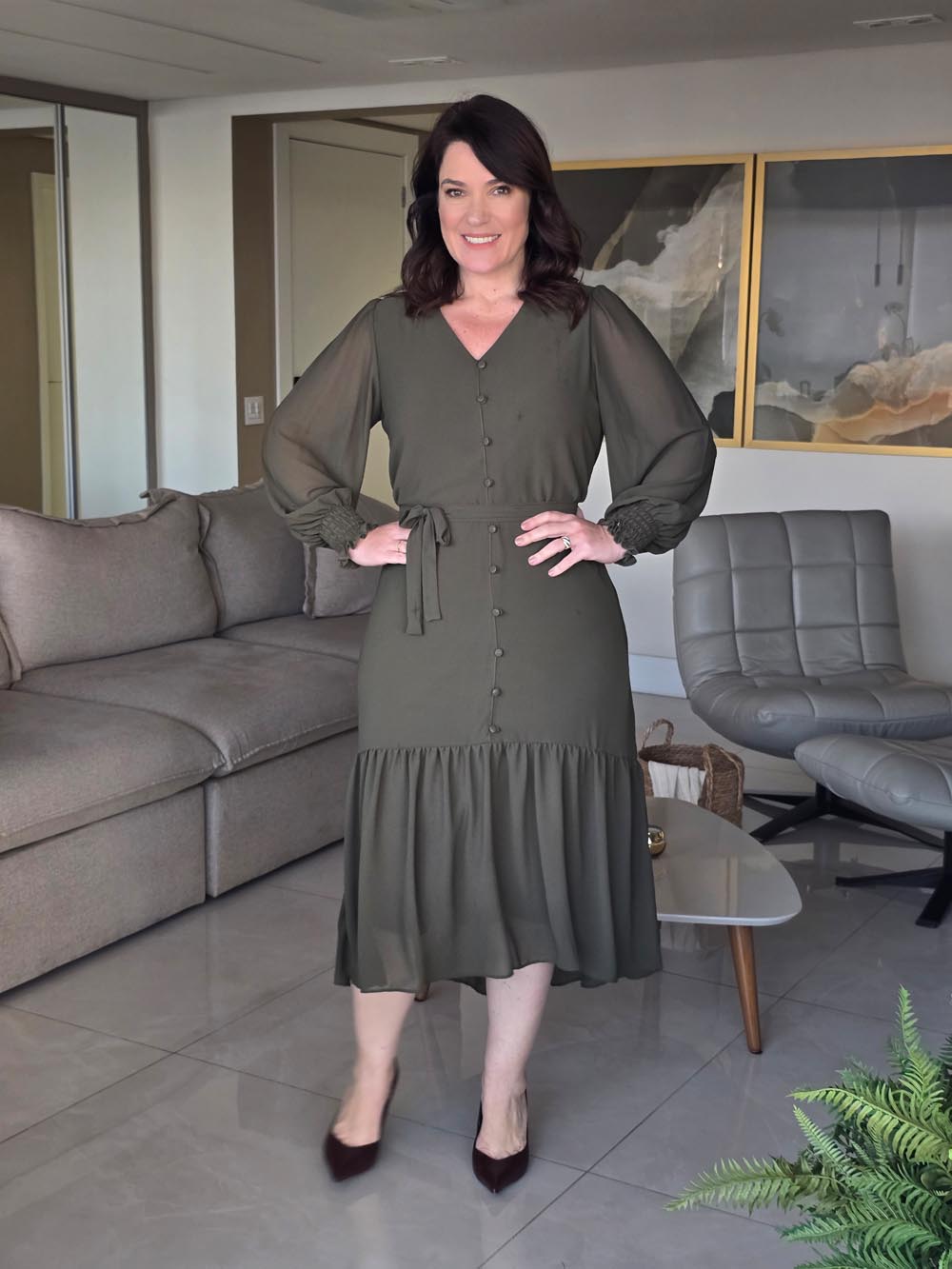 10031 VESTIDO DECOTE V E BABADO