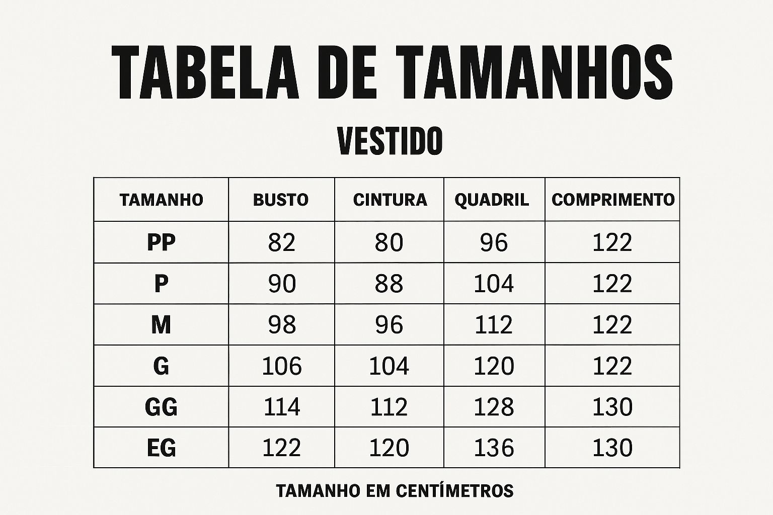 | BUSTO | CINTURA | QUADRIL | COMP. | |