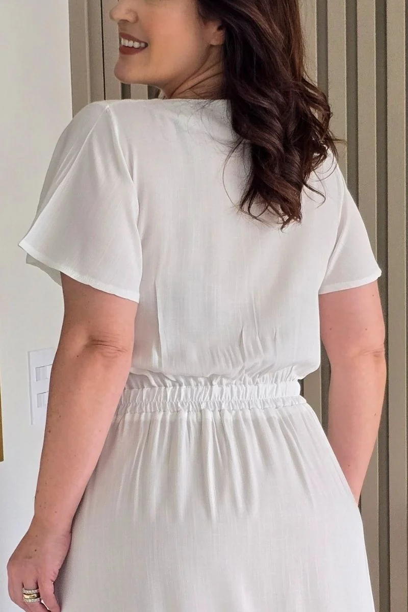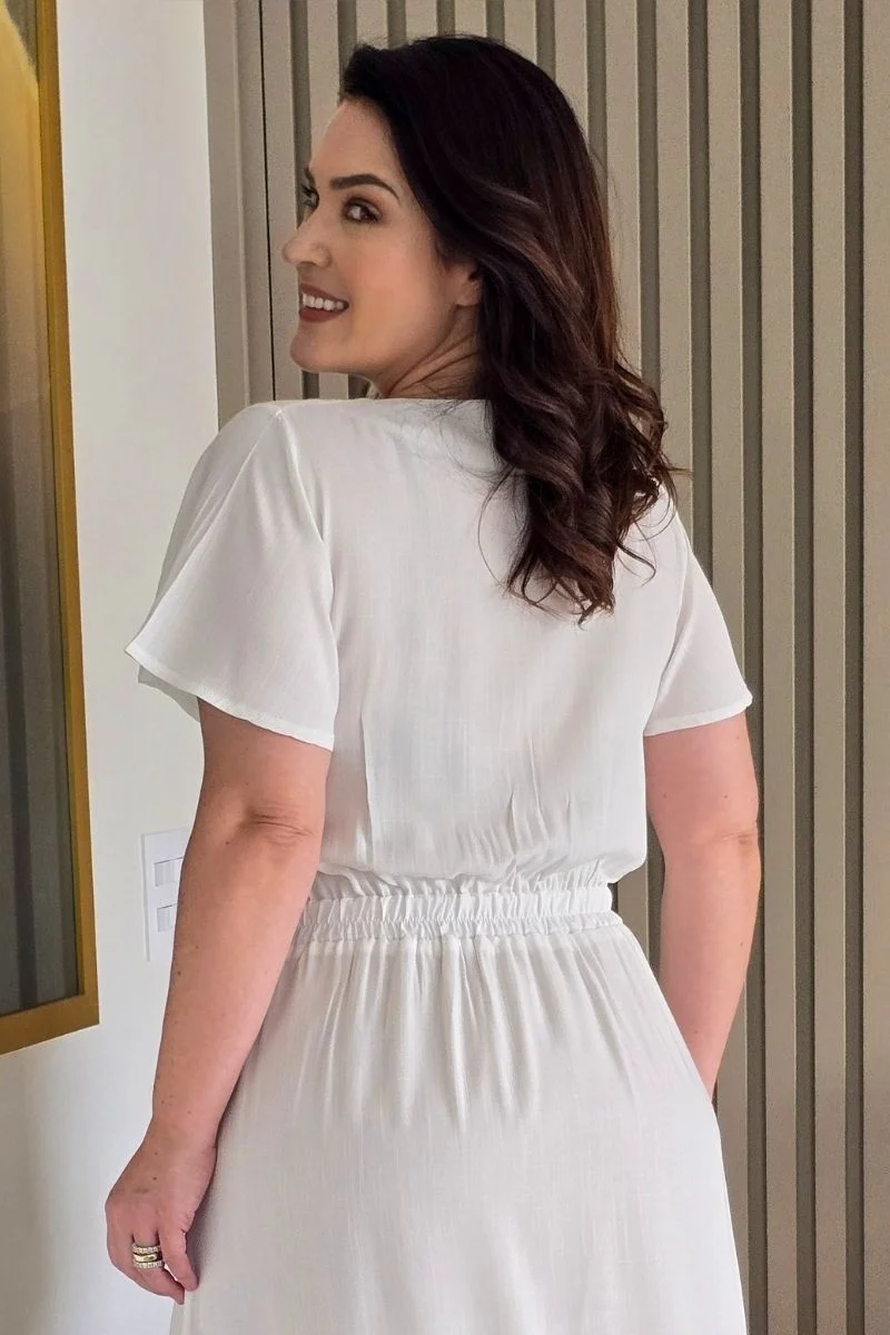 Esse vestido une visual sofisticado com conforto para o dia a dia e eventos formais. É uma escolha certeira para quem procura um vestido longo branco feminino, com detalhes que valorizam a silhueta e mantêm a modéstia.