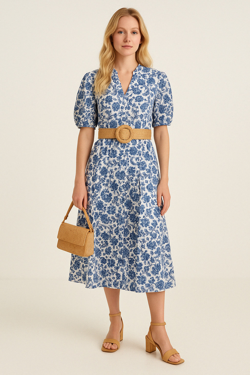 Esse elegante e romântico vestido de laise bordado azul midi é uma peça encantadora e elegante, perfeita para um almoço em familia, festa de aniversário durante o dia, culto, batizados… e outras ocasiões especiais. Muito versátil, pode ser combinado com sandálias de salto alto, sapatilhas, rasteiras, sandalias de cortiça, tênis, tornando-o versátil para diferentes ocasiões.