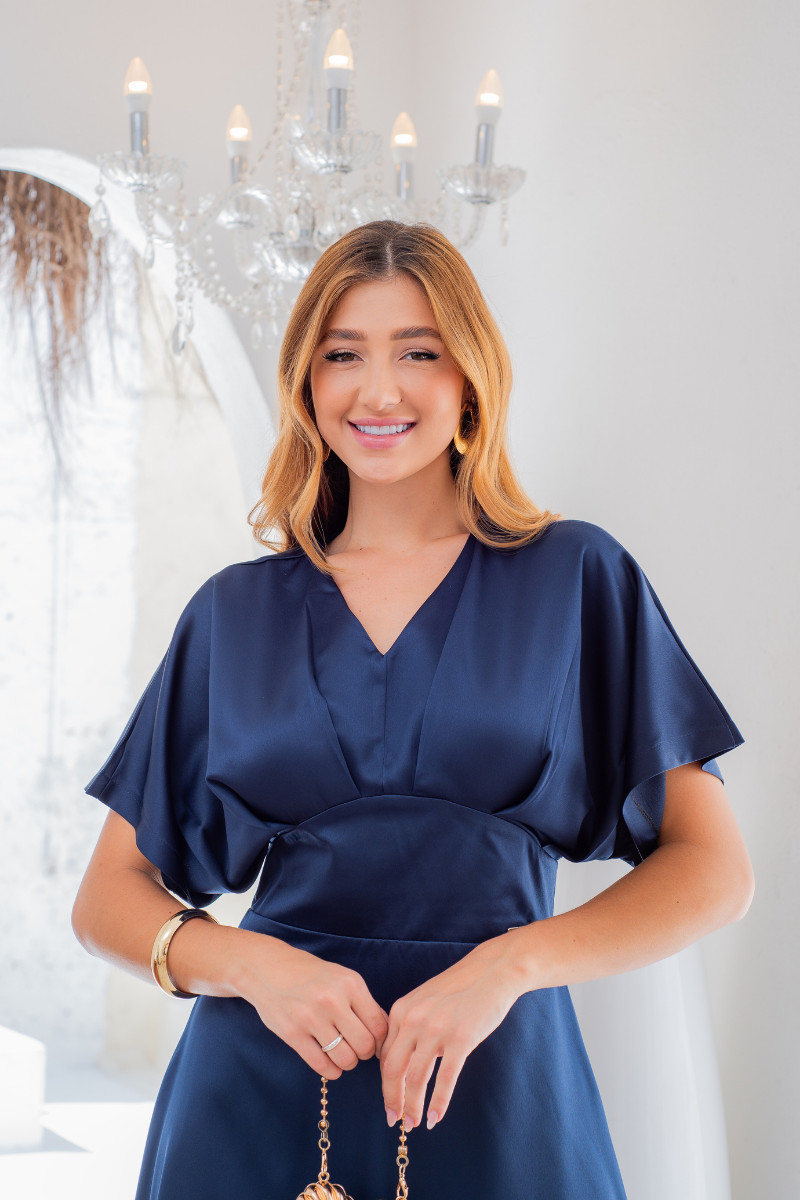 De lote exclusivo, o Élise Azul Marinho é a escolha certa para quem busca um vestido elegante, fluido, clássico e luminoso na medida certa.