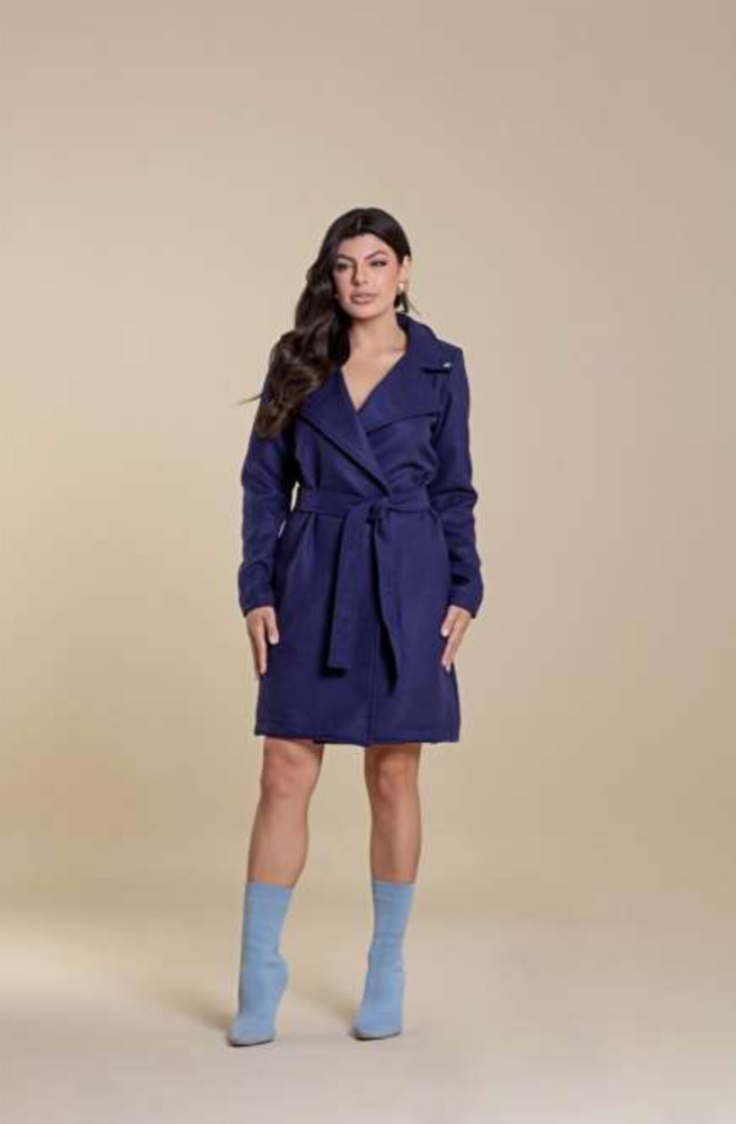 Casaco De Lã Batida Com Bolsos Funcionais E Faixa Hadaza