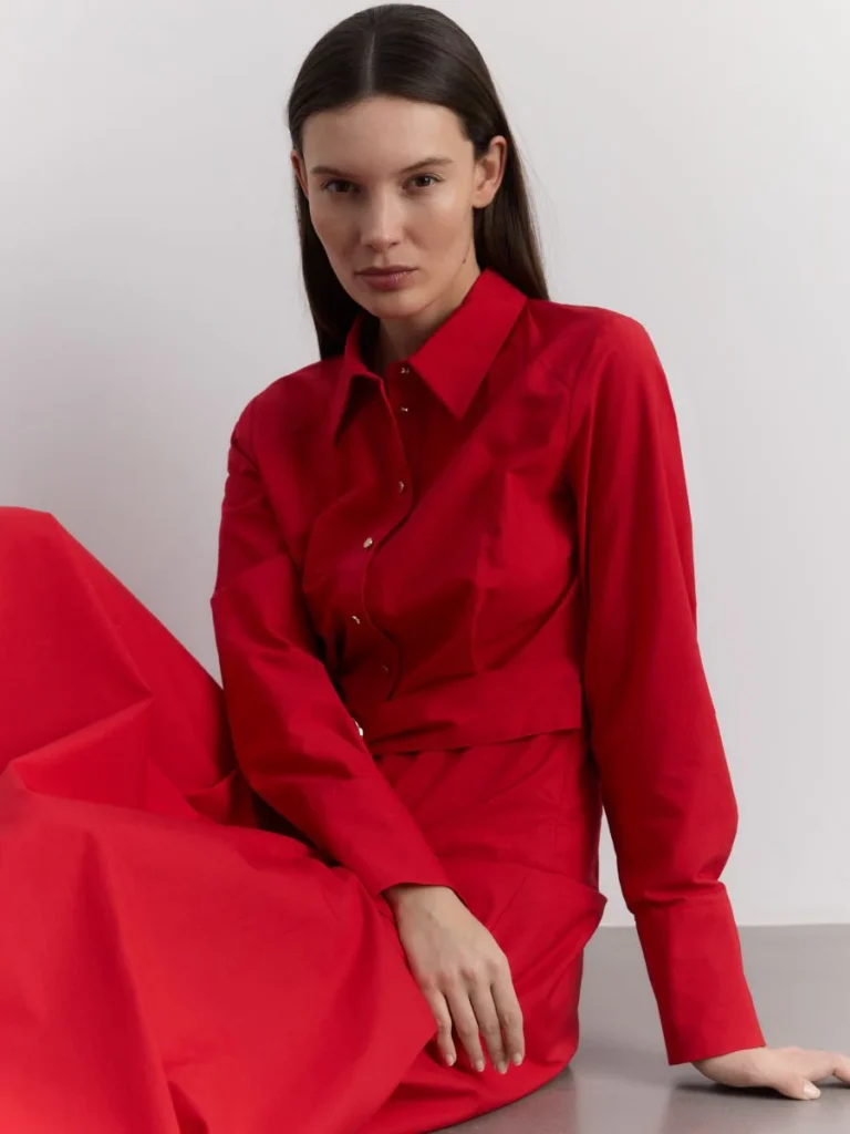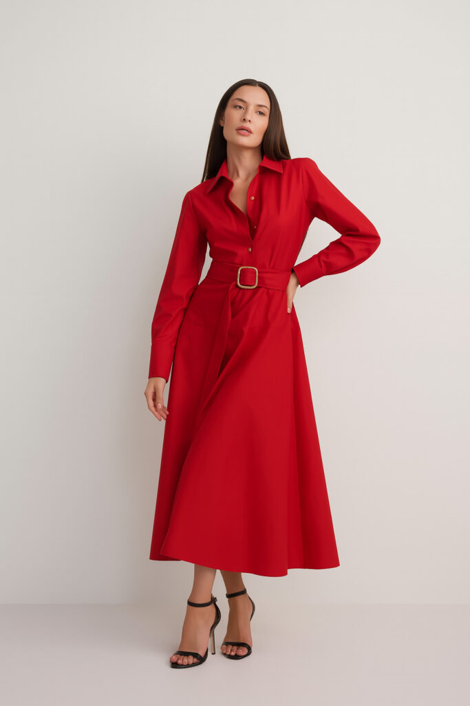 Vestido Chemise Linho com Elastano Vermelho