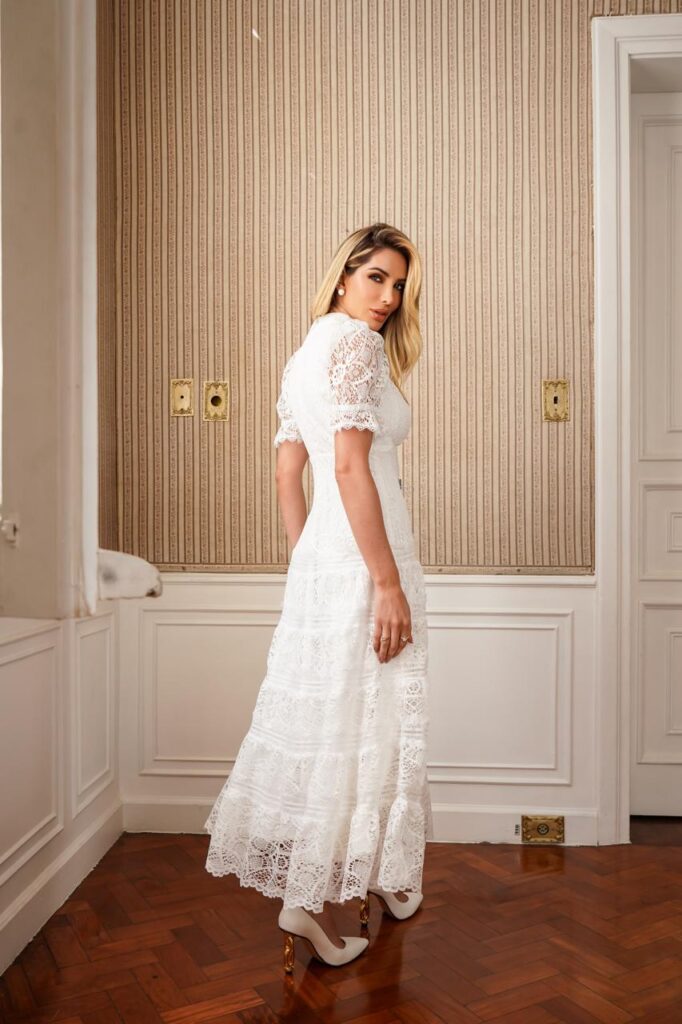Vestido Midi em Renda e Guipir (03987) DOCE MARIA